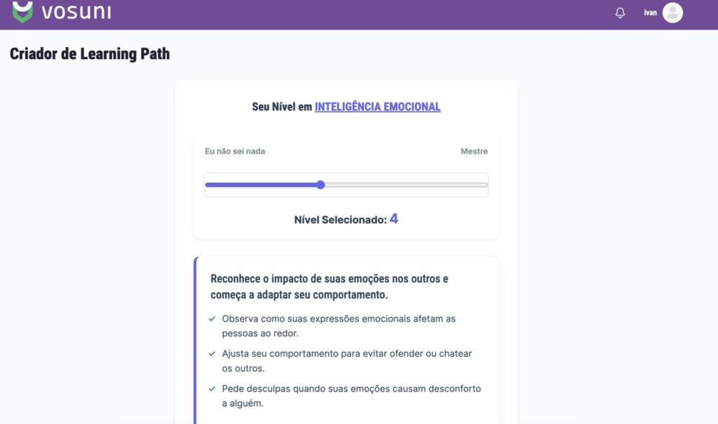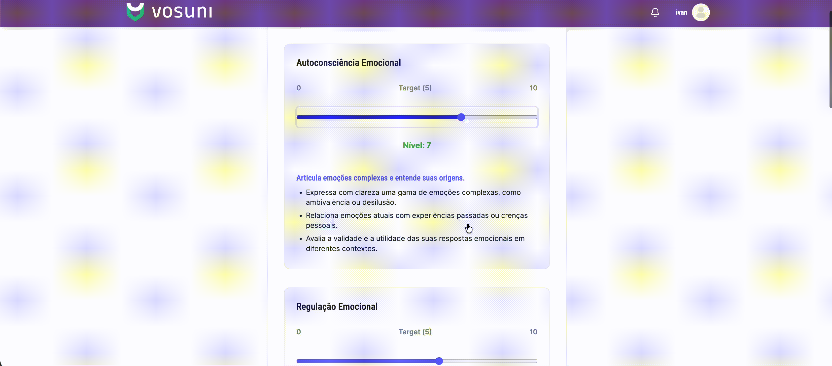 - O usuário define uma habilidade foco (ex: tomada de decisão)